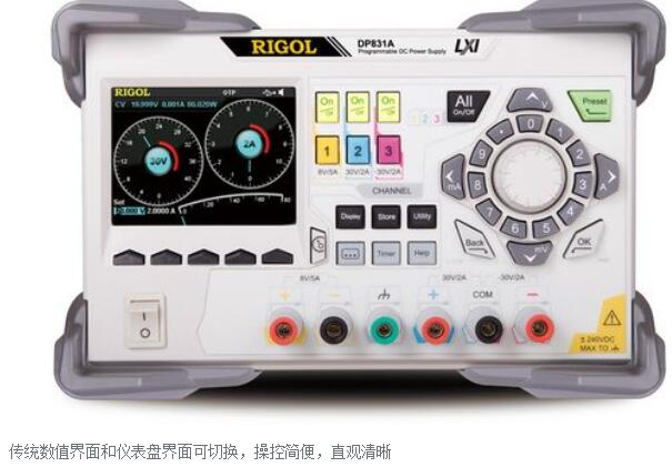 DP831A是一款高性能的具有三路输出的可编程线性直流电源。它拥有纯净输出,优异的性能指标,多种分析功能,丰富的接口,可满足多样化的测试需求。