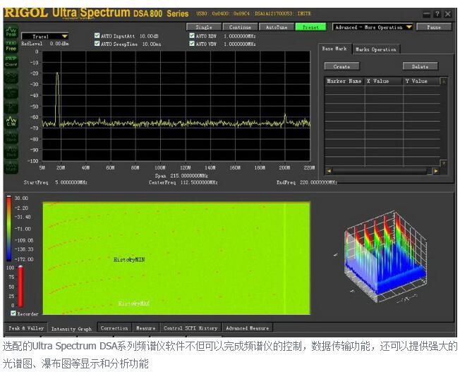 DSA700系列频谱分析仪,最高频率可达到1GHz,采用全数字中频技术,保证其具备卓越的指标和稳定的性能,相比模拟频谱仪具有更高的性价比。DSA700系列提供针对2FSK调制的遥控器、汽车钥匙等信号测量分析功能。在SSC模式下的2FSK调制信号测量分析功能,既保留了数字频谱分析仪的稳定和集成特性,又兼顾模拟频谱分析仪的快速捕获特性。独创宽屏的设计,外观新颖,操作简便,是射频研发、设计验证、生产制造和教育培训的理想选择。