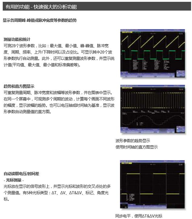 DLM2000是台式数字信号示波器,可用于设计和调试电子器件。它采用人体工程学设计,使用方便,并且包含了很多功能。其带宽为200至500MHz,存储器为12.5到125MP,确保总有一款DLM2000能满足您的应用和预算。使用DLM2000行业领先的DLMmicrositeimagewebspace“灵活MSO输入”,您可以选择通道4作为模拟输入,或用它采集8位逻辑信号。现代电子器件包含模拟和数字电路,而使用DLM2000灵活的MSO输入,您可对两者进行测量,包括混合信号触发以及并行或串行总线的解码。