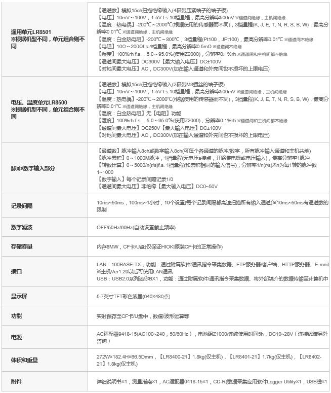 | 标配2个相当于电压、温度单元LR8500(15ch)。 | |