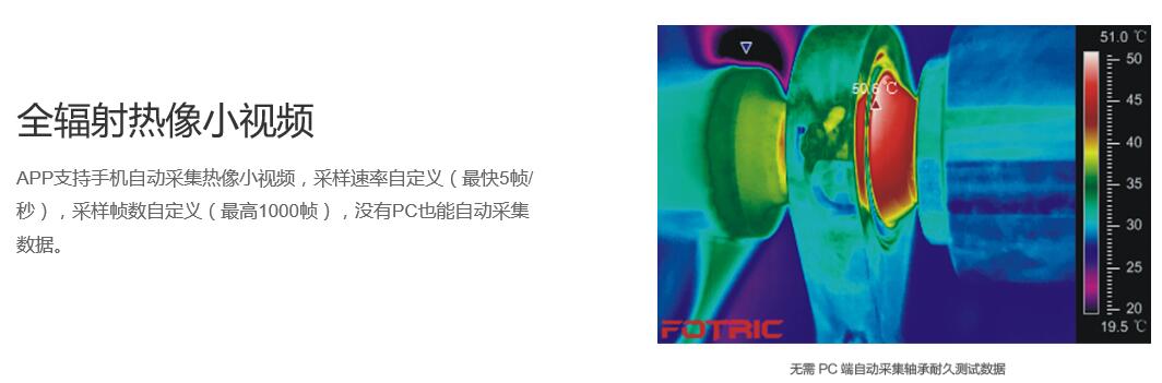 Fotric 228拥有FOTRIC 220系列中科研型热像仪的高配置。640*480的红外分辨率,通过像素增强功能,可以实现4倍图像清晰度,画质提升为1280*960。在标准镜头下最小成像距离为0.1m,温度量程可扩展至1200℃和-40℃。更有多种专业选件,应对各种测试对象与场景需求。通过InnovatIR APP可以轻松在手机上将现场报告快速生成,完成多样化的团队协作。通过电脑连接AnalyzIR专业分析软件,完全满足研发用户苛刻的使用需求开发。